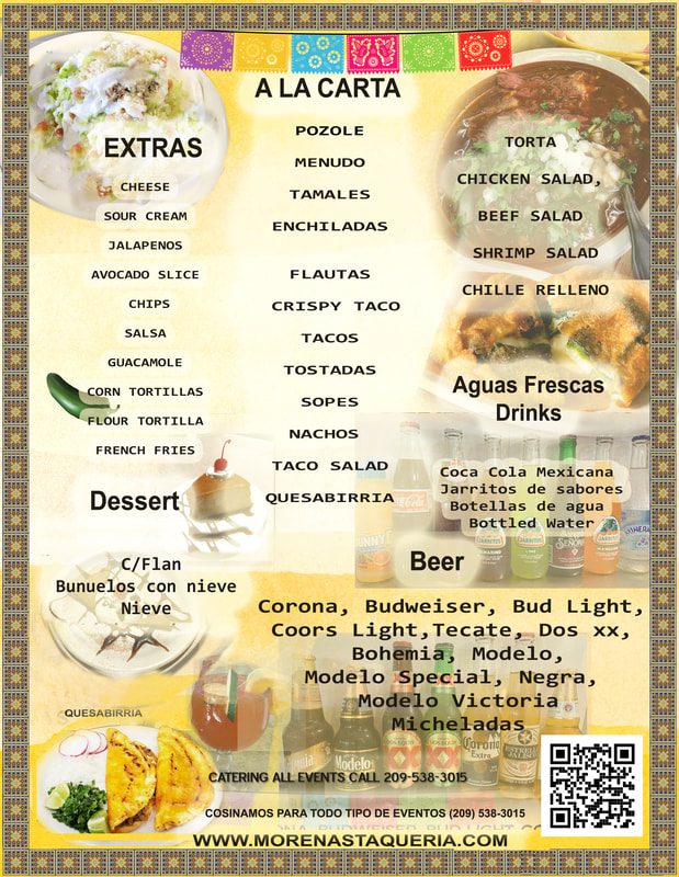 Carnitas (Pork), Carne Asada (Beef), Chile Verde (Pork), Chile Colorado (Beef), Cabeza (Head),
